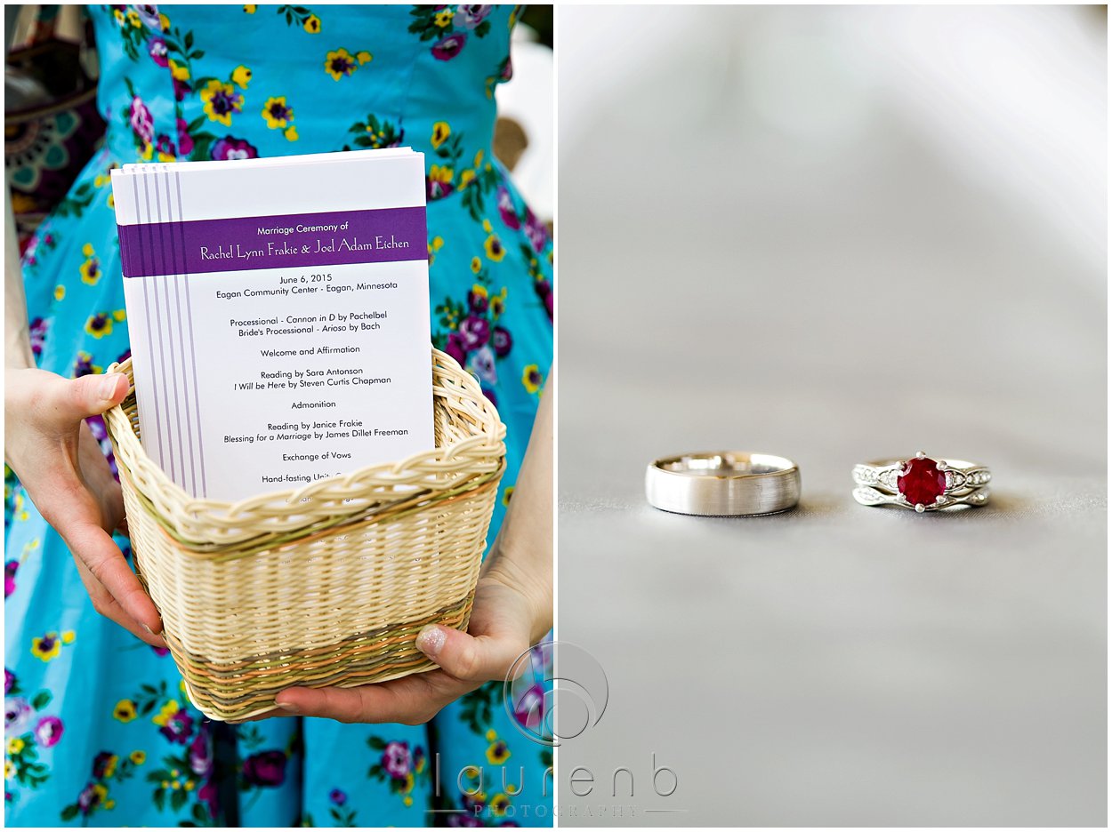 I've been lucky to know Rachel and Joel for a couple of years now. Getting to know and work with them a handful of times over the course of their wedding planning and photography process has been an absolute dream. Here, clearly, are two totally in love people who support and adore one another. It's no surprise they didn't stop smiling the entire wedding day! I'm not exaggerating - they literally are. so. happy! It's a breath of fresh air! Congrats you guys - I couldn't be happier for you both and the family you've created! Rachel and Joel's wedding and reception were at the Eagan Community Center and being a June wedding, we were lucky to beat the rain! The location and decor were lovely. Here is Rachel and Joel's fall engagement session at Moir Park in Bloomington (my old stomping grounds!). So fun to do the Couple's (i.e. engagement) Session in a different season than your wedding. It adds variety to your image collection.
